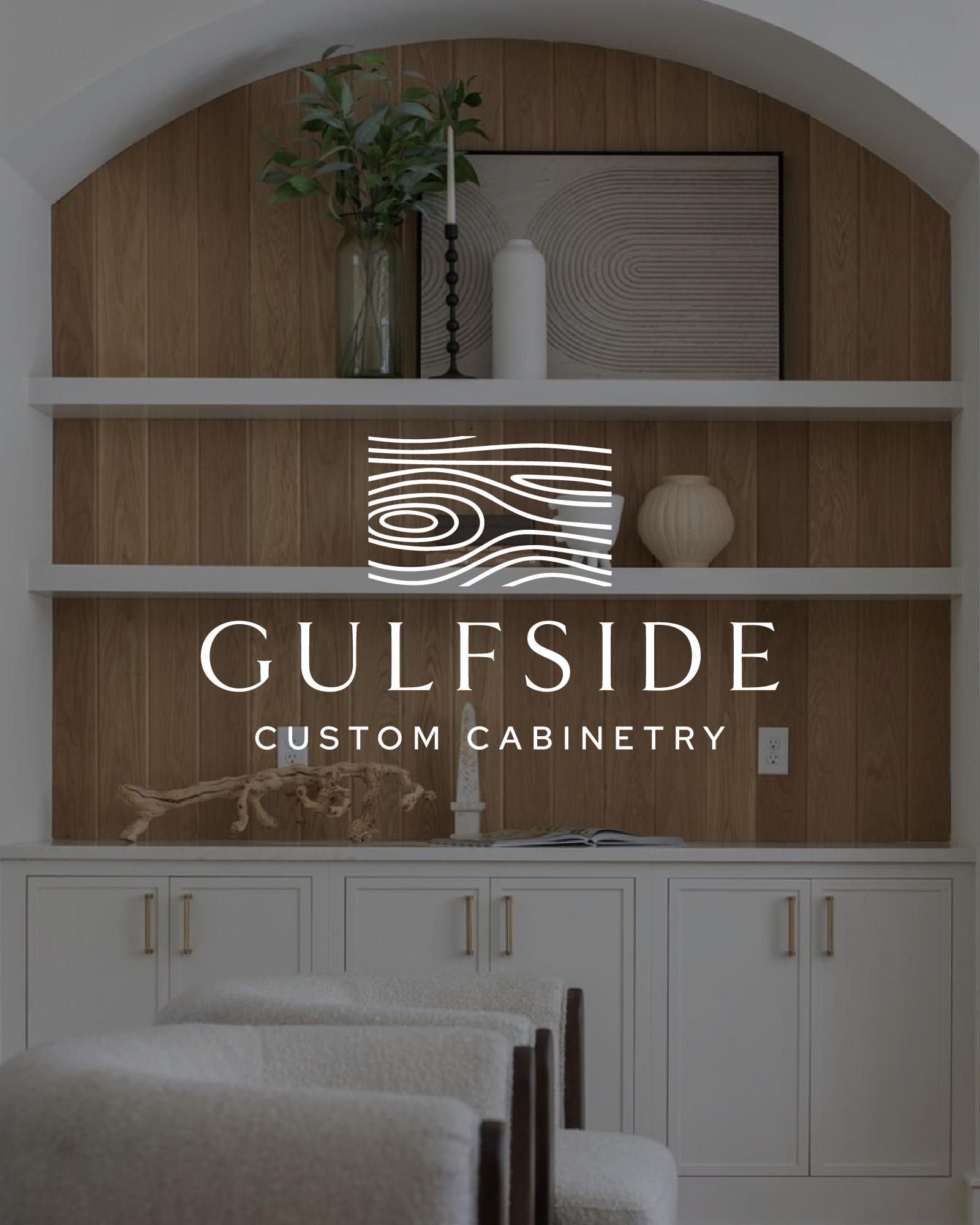 Gulfside Custom Cabinetry specializes in artful, custom cabinetry to enhance the function and form of your space, serving Pensacola, FL’s Gulf Coast and beyond. We wanted this brand to feel coastal and masculine, but also have a tone of elegance and craft.
